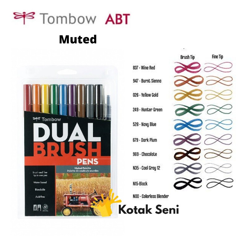 Tombow Dual Brush Pen Set With Blender Muted Palette Pack Of 10 Tombow Abt Brush Pen Set 10 Shopee Indonesia